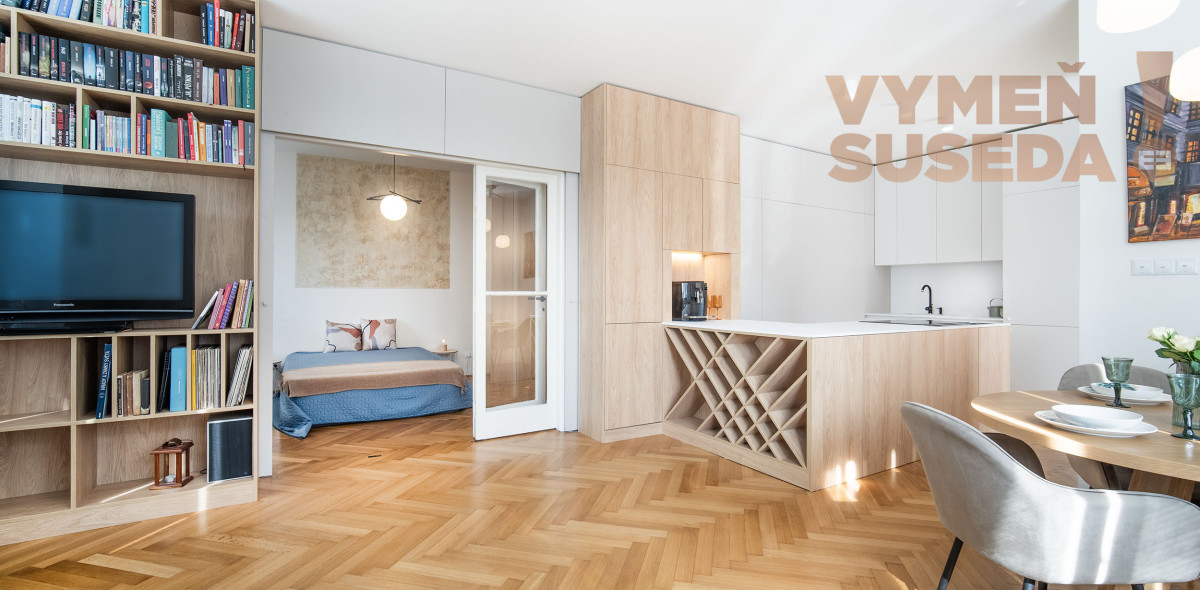 Byt s vysokými stropmi prešiel kompletnou rekonštrukciou, pôvodné drevené parkety, klimatizácia, vykurovanie je zabezpečené vlastným plynovým kotlom v bytovom dome.