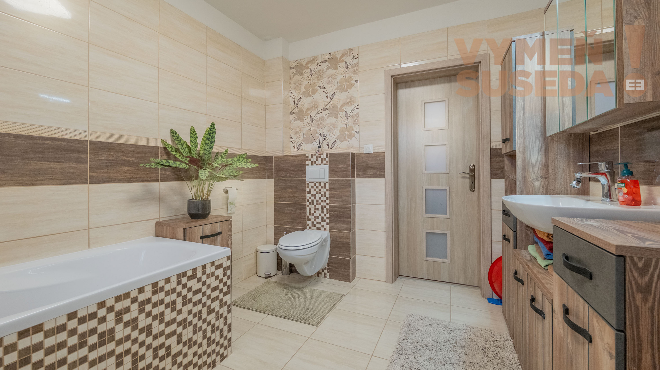 Priestranná kúpeľňa s WC a vaňou