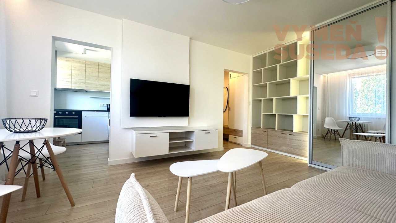 Ponúkame na prenájom výnimočný, kompletne zariadený, zrekonštruovaný 1 izb. byt s priestranným balkónom vo výbornej lokalite Bratislavy – Karlová Ves /Silvánska ulica/.