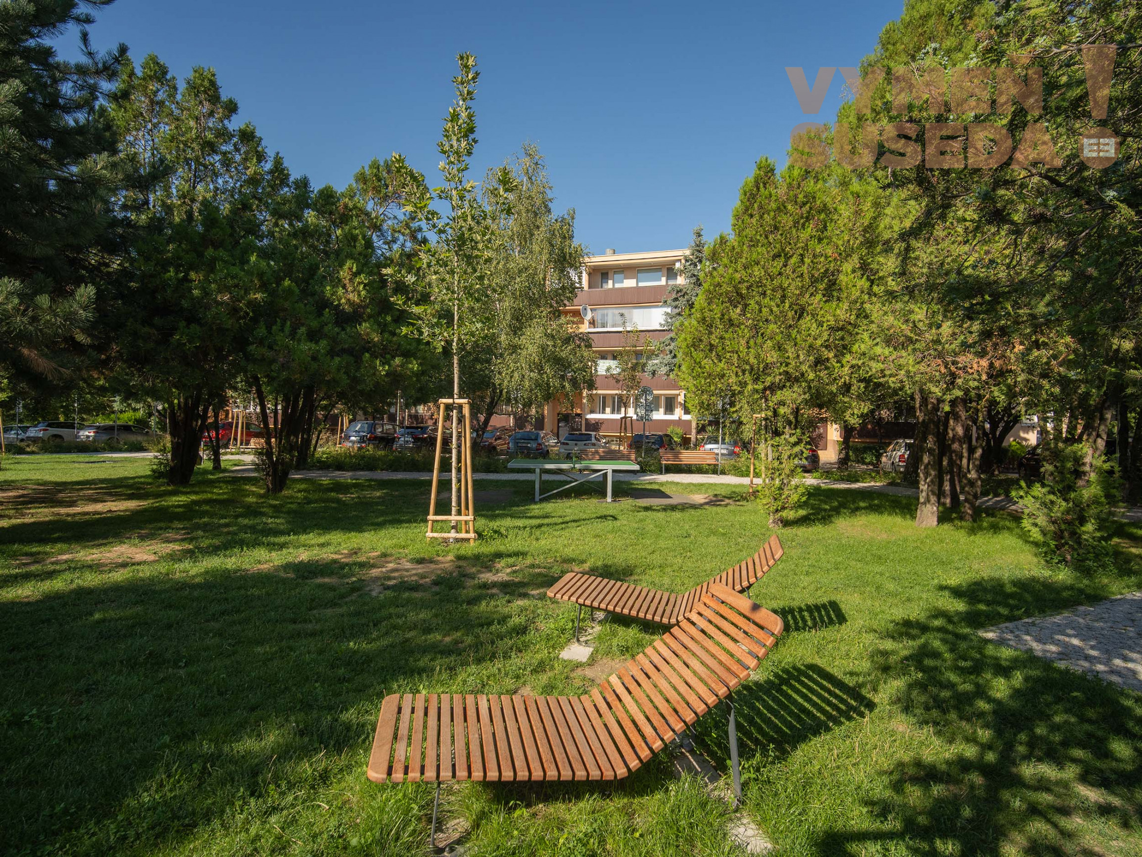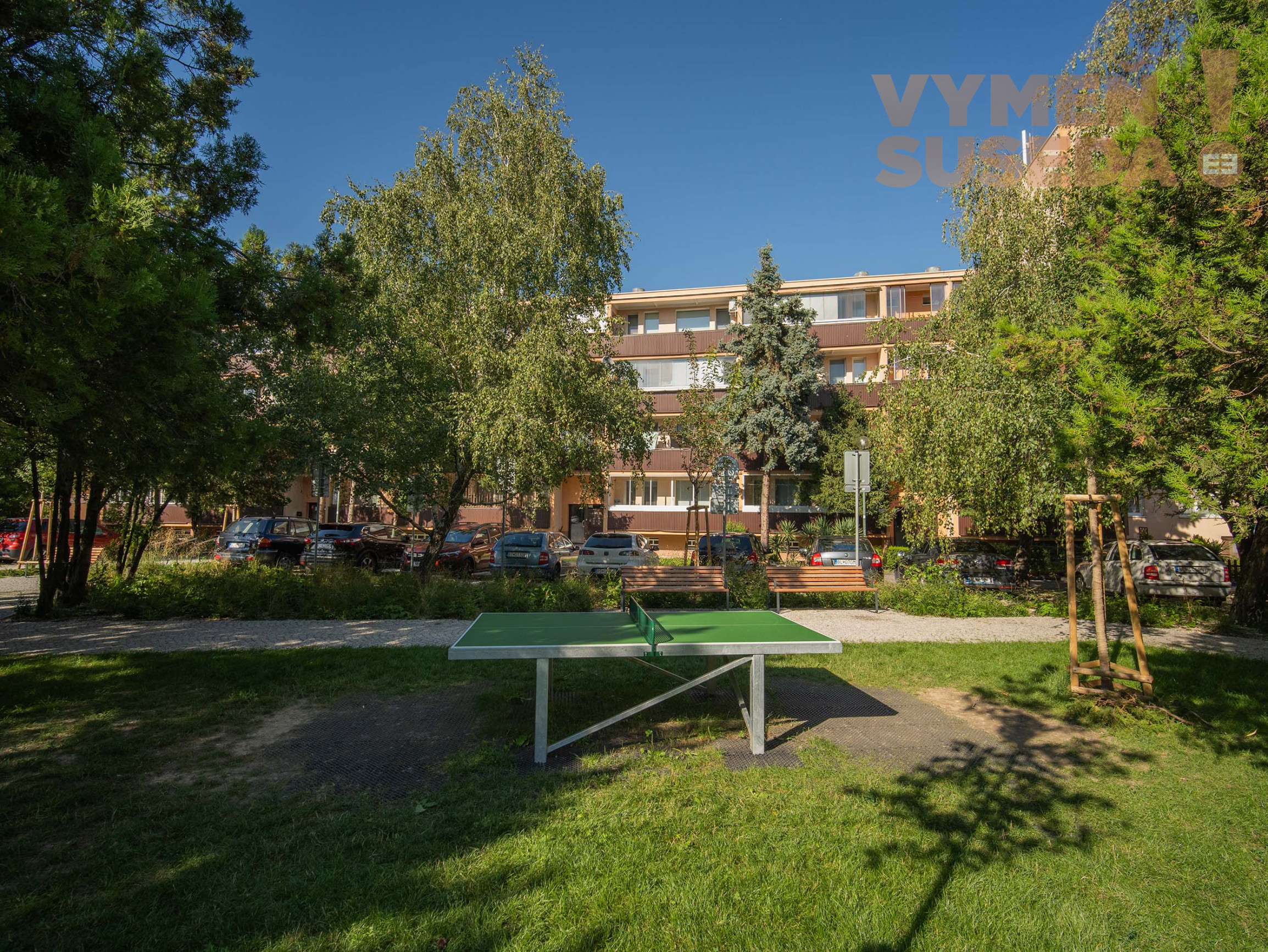 Vo dvore bol nedávno vybudovaný nový park s lavičkami, lehátkami, ping-pongovým stolom a vonkajšími fitness prvkami – ideálne miesto na oddych, prechádzky či šport.