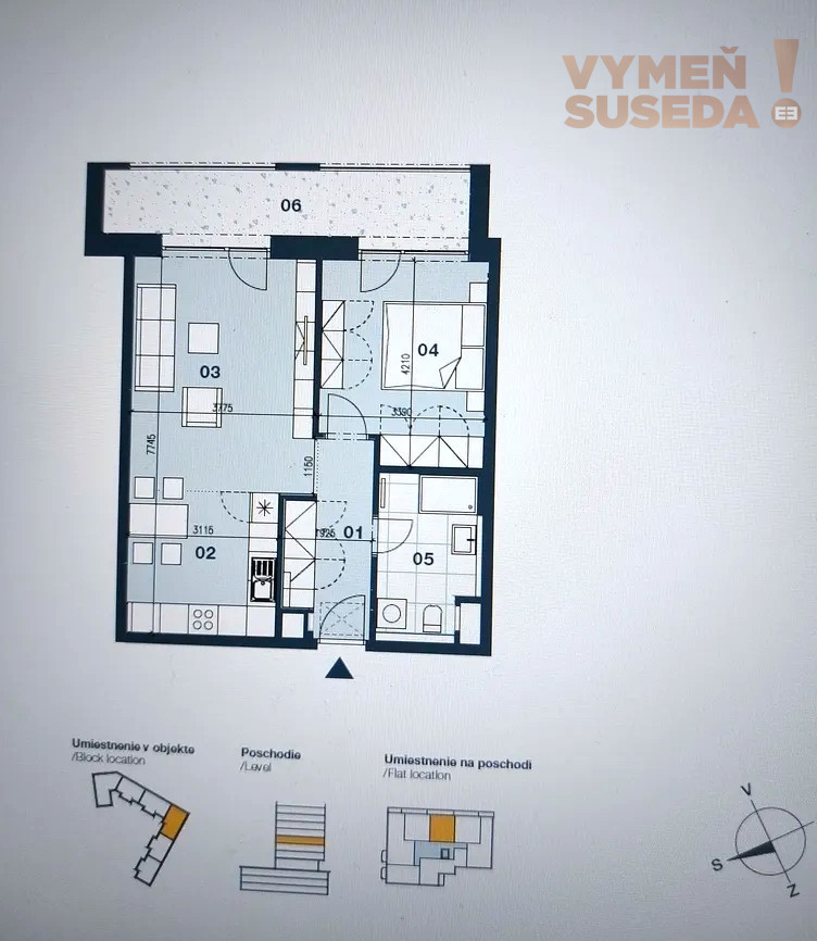 Byt zaujme premyslenou dispozíciou a vzdušnosťou priestoru. Dominantou je priestranná obývacia izba prepojená s kuchyňou a kuchynským kútom, čím vzniká elegantný denný priestor s prirodzeným svetlom a priamym vstupom na loggiu.