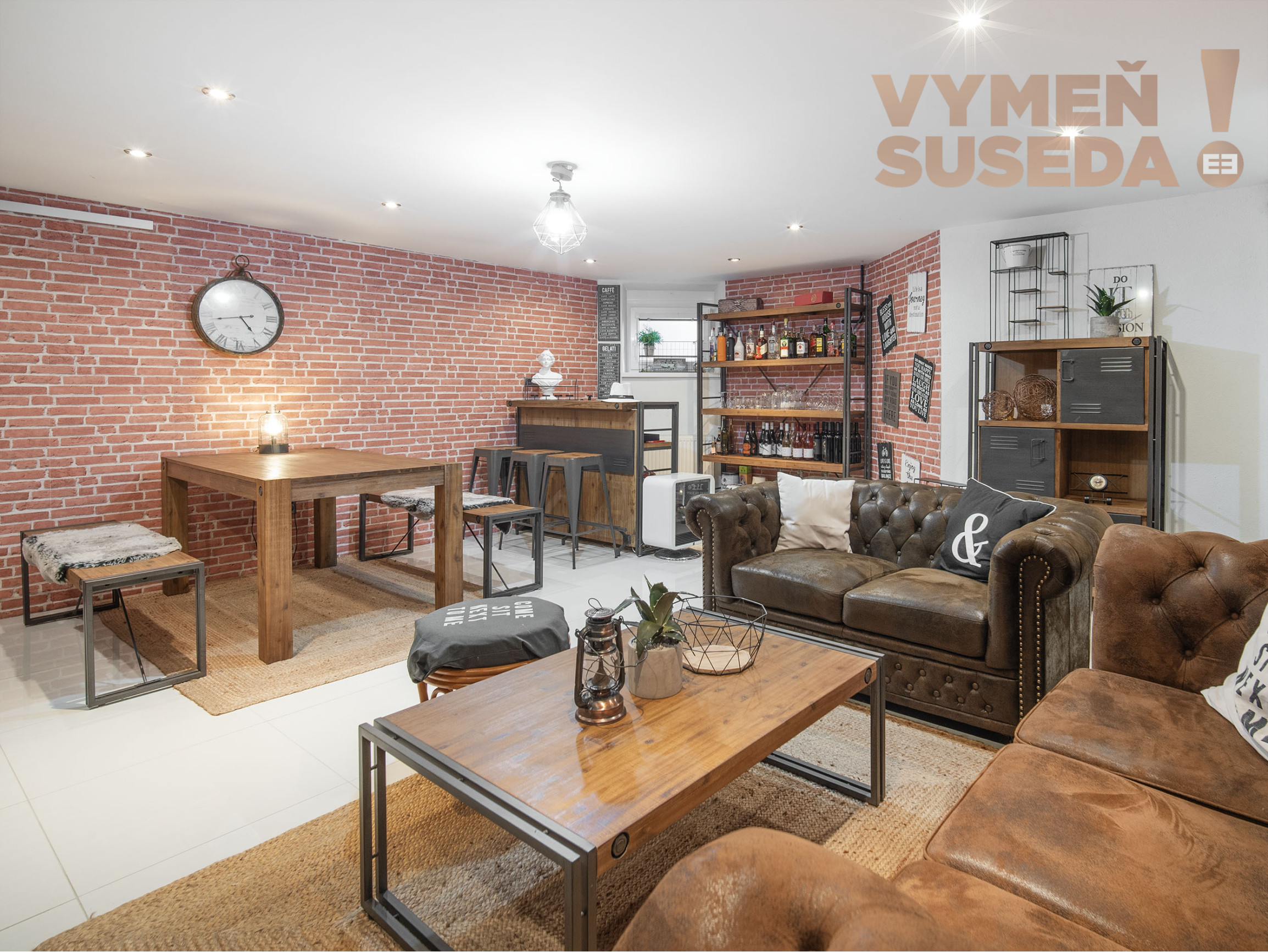 Tomuto poschodiu dominuje štýlovo industriálne plne zariadený ,,pánsky salónik“ s barom a posedením