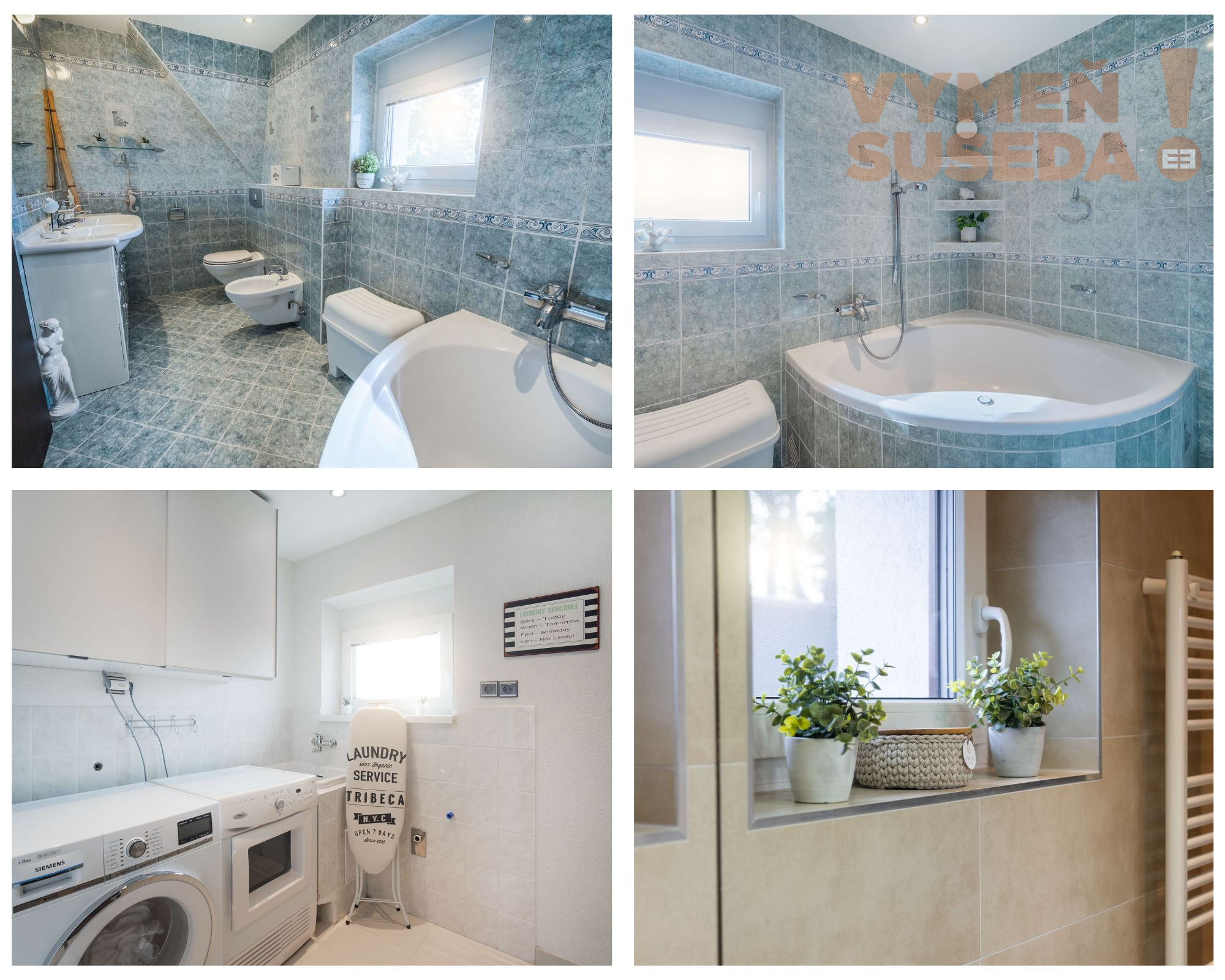 Technická miestnosť /práčovňa s práčkou, sušičkou, s umývadlom a priestorom na žehlenie/