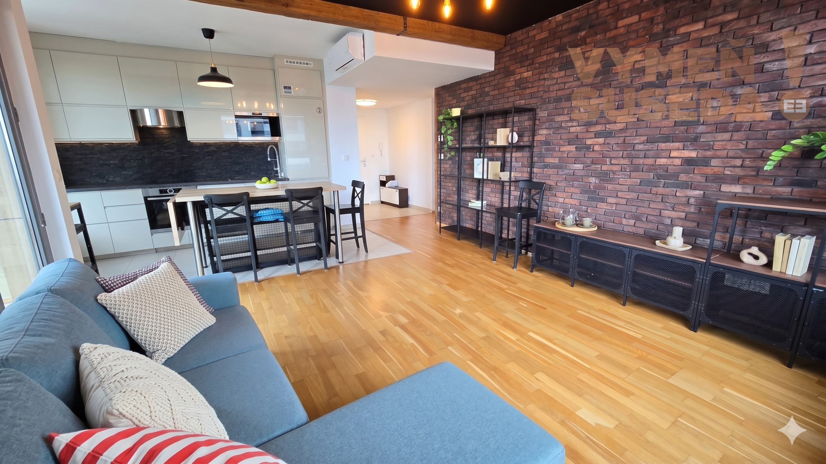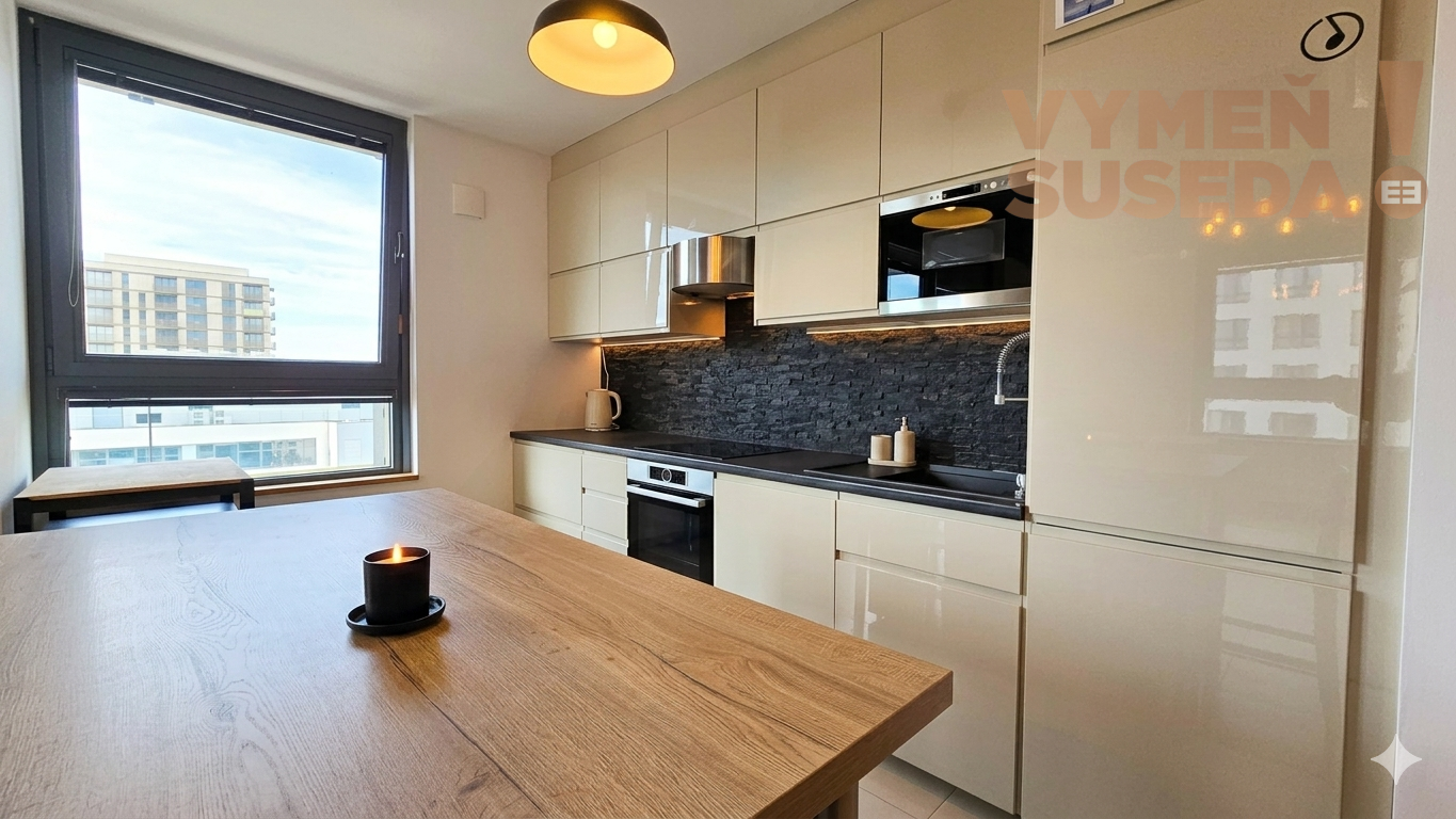 Byt má výbornú dispozíciu orientovaný na dve svetové strany J/V. Prenajíma sa kompletne zariadený tak ako na fotografiách vrátane klimatizácie v obývačke. Matrac v spálni je z hygienických dôvodov úplne nový. Súčasťou prenájmu je aj parkovacie miesto v garáži.